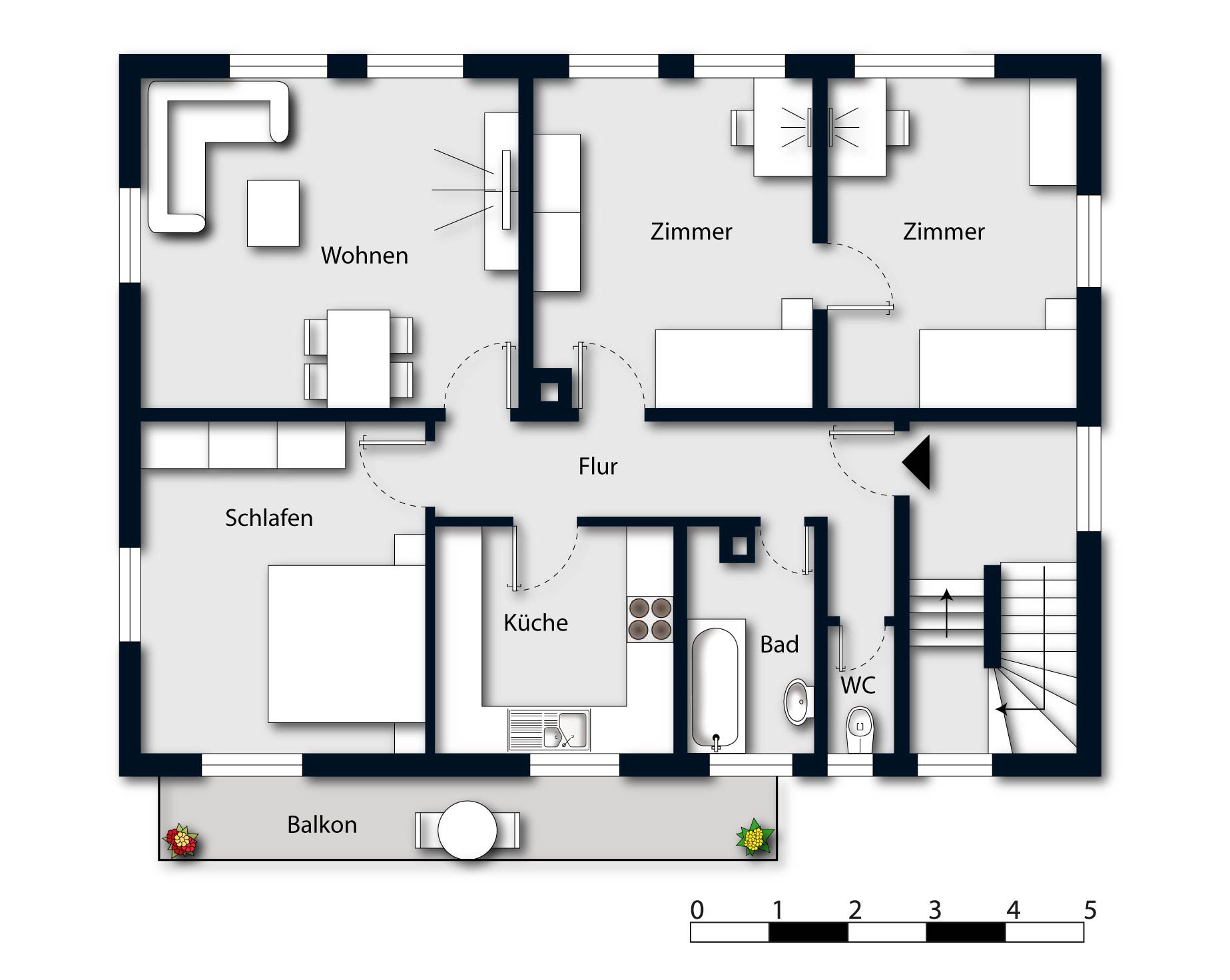 DG = 4-Zi-Wo mit 65 m² WohnflächeDie Wohnungen wurden in den letzten Jahren renoviert.